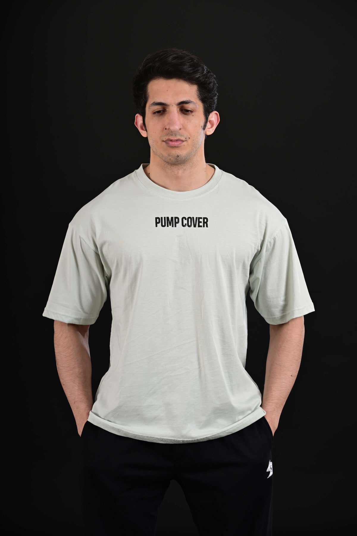 The Pump Cover Drop Shoulder T-Shirt in Mint is designed for men who want comfort and modern gym style.
